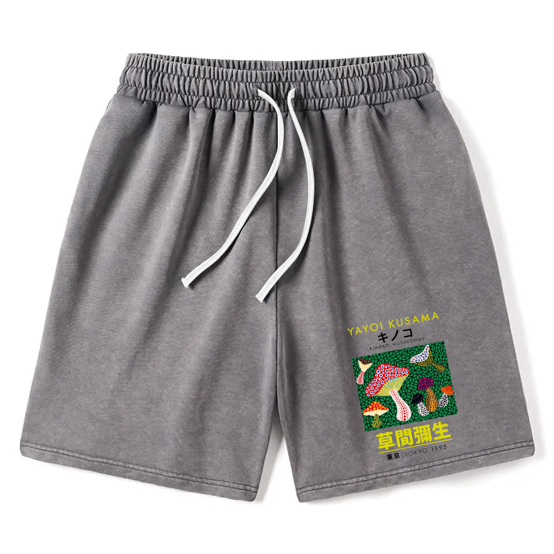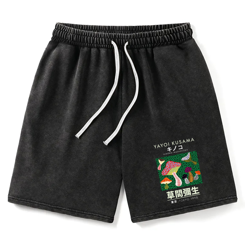 Animescollection Yayoi Kusama Spotted Mushroom Vintage Washed Shorts