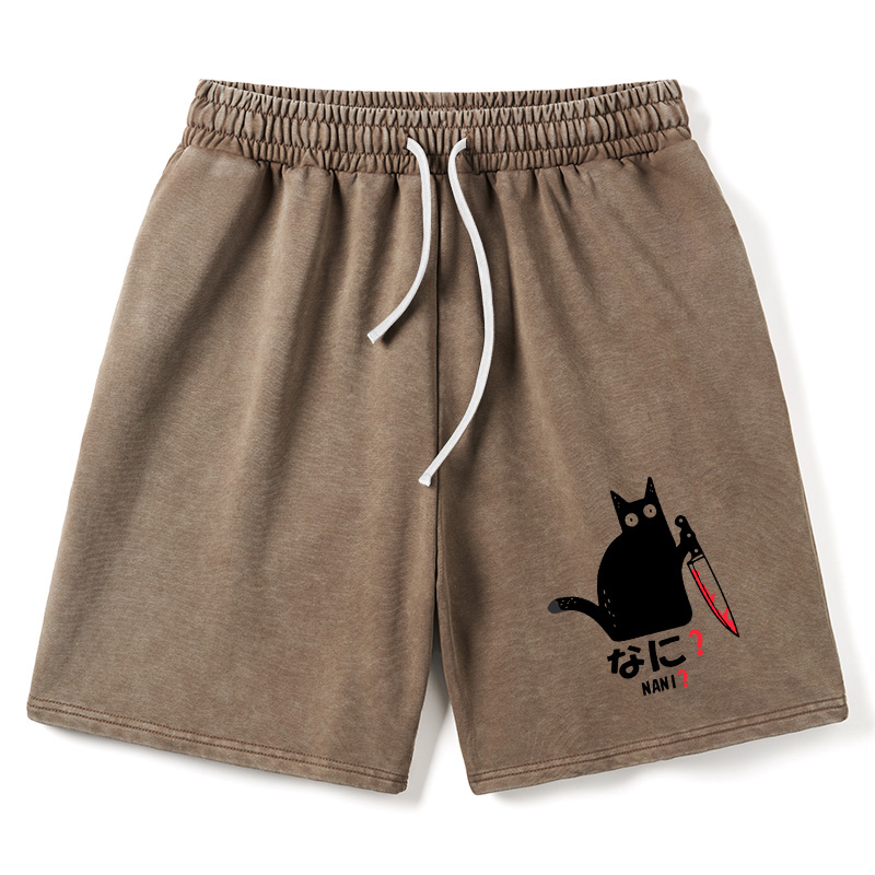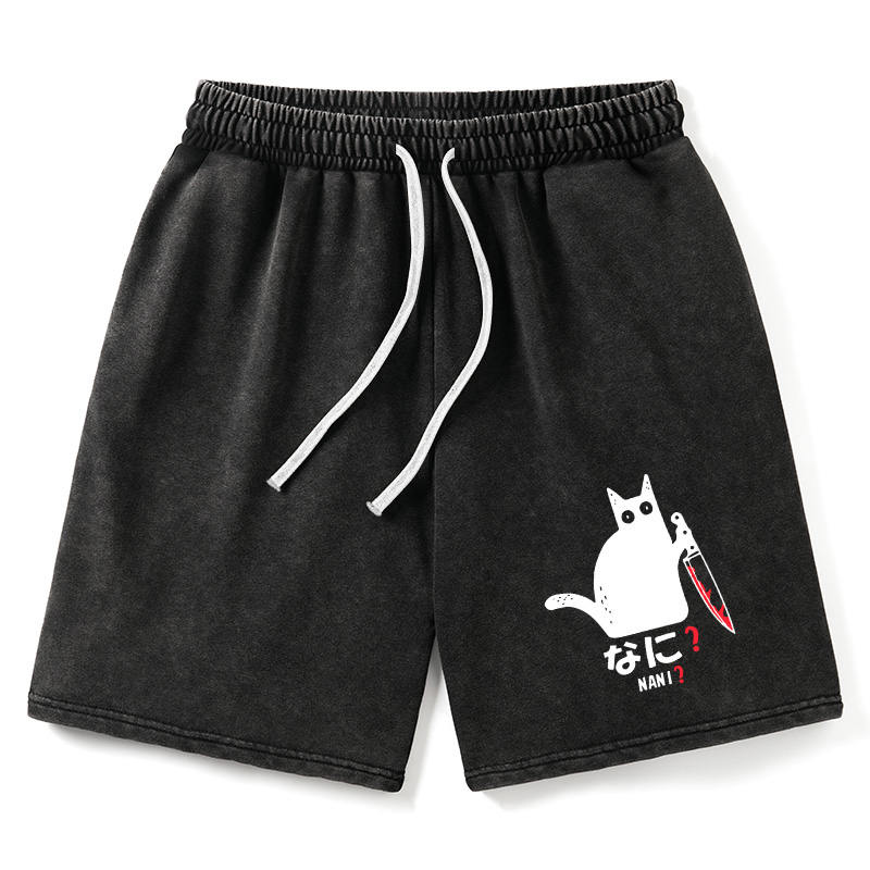 Animescollection A Puzzled Cat Holding A Knife Washed Shorts