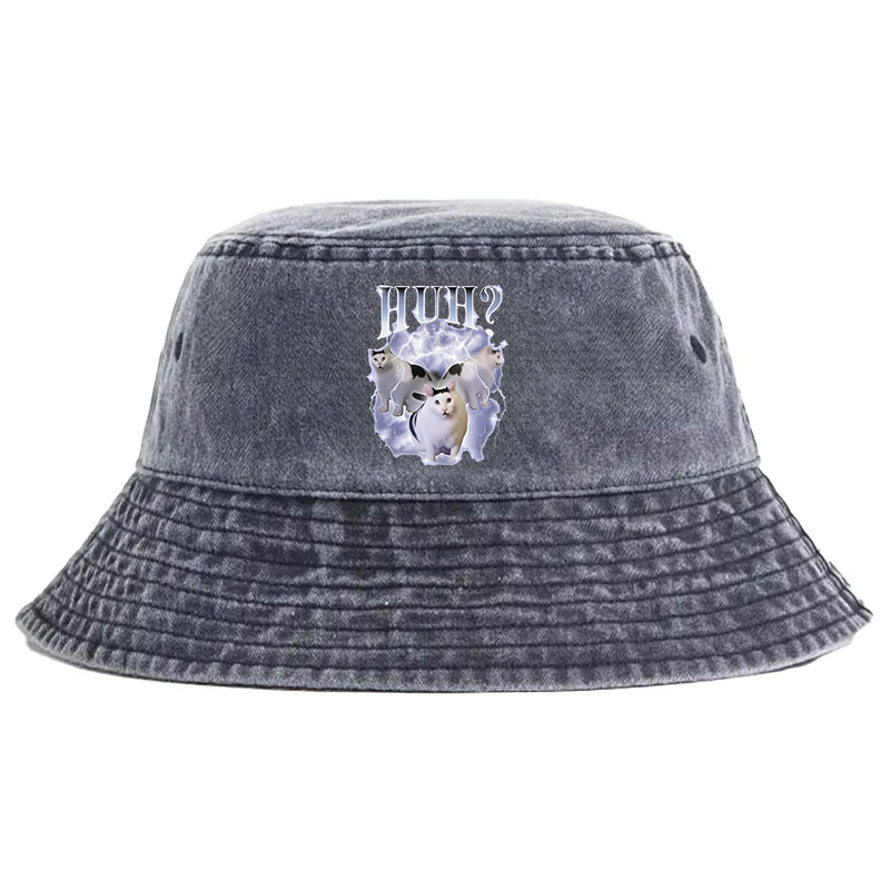 Animescollection Huh Cat Chonky Ben Meme Washed Bucket Hat