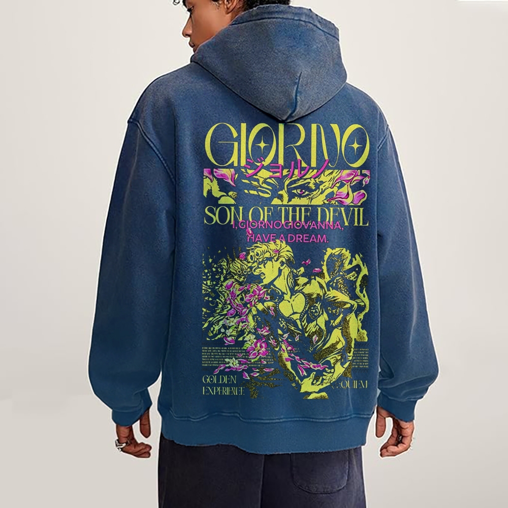 JoJo's Bizarre Adventure: Unisex Washed-Effect Anime Hoodie