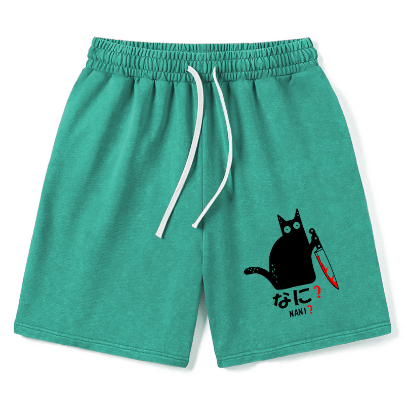Animescollection A Puzzled Cat Holding A Knife Washed Shorts