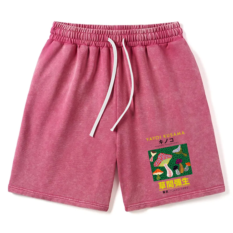 Animescollection Yayoi Kusama Spotted Mushroom Vintage Washed Shorts